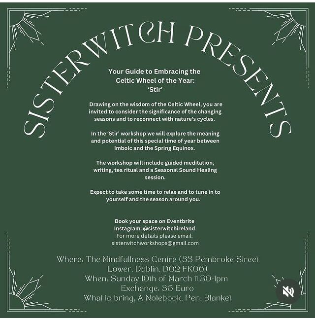 Tickets available on Eventbrite, for more information see our Instagram @sisterwitchireland or email sisterwitchworkshops@gmail.com